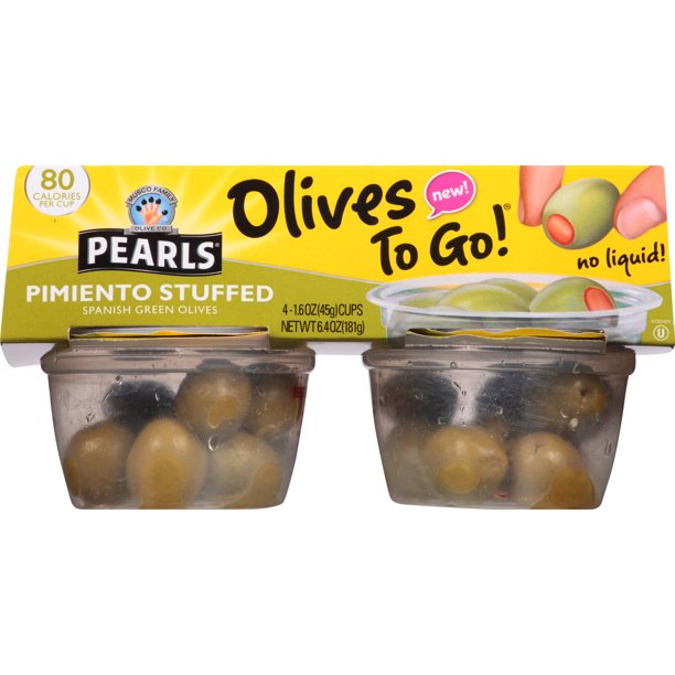 Pearls Olives To Go Pimiento Stuffed Spanish Green Olives 6 Packages Of 4 1 6 Ounce Servings Walmart Com
